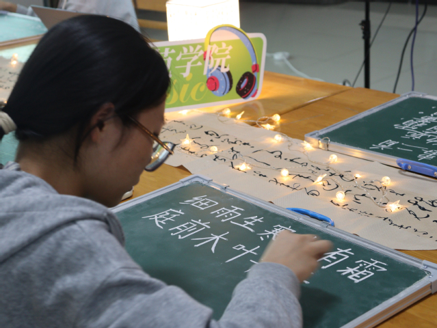 为弘扬中华优秀传统文化,营造书香校园氛围,近期伟德国际bevictor1946“笔走四时”青年夜校第二期活动在东校区“一站式”青年之家温情开展。本次活动以“万物收藏,笔墨生阳”为主题,将书法艺术与节气文化相融合,为大家带来一场沉浸式的美育体验。