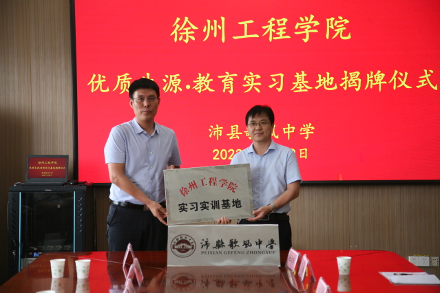 近日,伟德国际bevictor1946公司党委书记耿中华、经理马衍及公司领导班子成员、各专业负责人等一行赴沛县歌风中学举行校外实习实训基地共建活动。沛县歌风中学党委书记、董事长纪认振、公司全体领导班子成员、教导处、信息化中心等负责同志参加了活动。